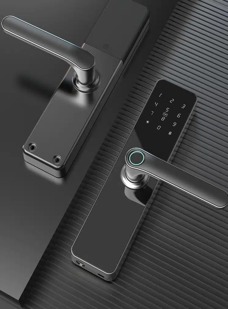 A smart door lock is an electronic locking device that secures a door and allows it to be locked or unlocked without a physical key. It uses technology like Wi-Fi or Bluetooth to connect to a smartphone app, enabling features such as remote access, activity monitoring, and notifications. Smart locks provide convenience and enhanced security by offering keyless entry through various methods and granting temporary access codes to visitors.